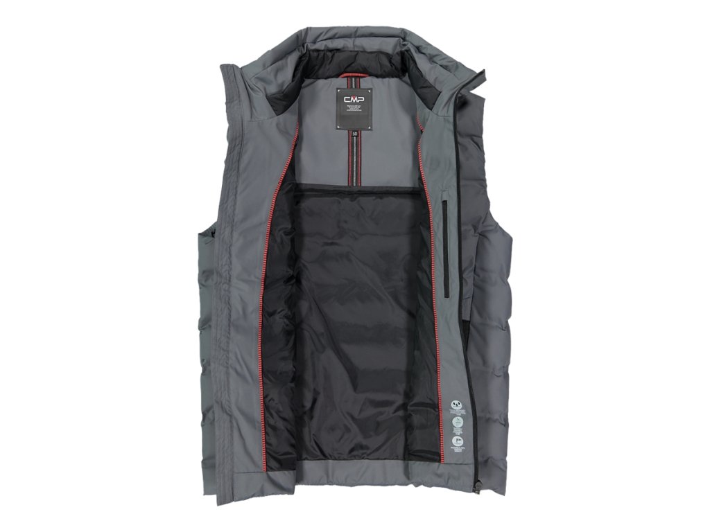 Pánská teplá a ochranná vesta. Stylově, bez chladu s touto technickou pánskou vestou: Feel Warm Flock polstrování, měkká 100% polyesterová podšívka a membrána Clima Protect, vodotěsná (WP 10,000) a prodyšná (MVP 10,000). Volnost pohybu zajišťuje svařovaný strečový nylon, se dvěma kapsami na zip pro pohodlí a bezpečnost. Ideální pro outdoorové aktivity nebo sportovní městský vzhled.