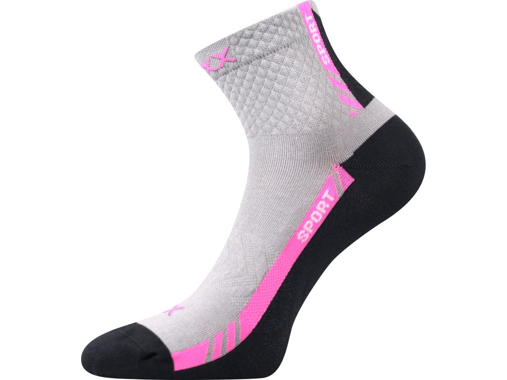 VoXX ponožky sportovní slabé PIUS s bavlnou SVĚTLE ŠEDÉ S RŮŽOVOU (3 páry)