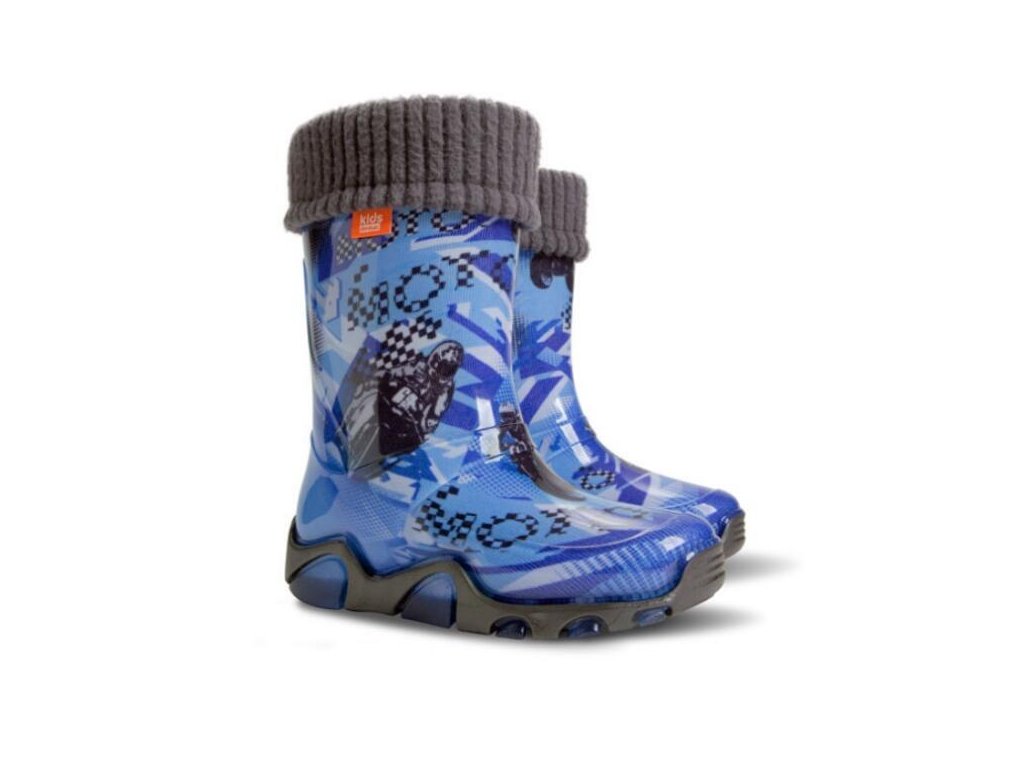 Dětské zateplené holínky demar STORMER LUX EXCLUSIVE jsou ideální pro deštivé letní a podzimní počasí. Barva holínek je modrá s motivem motorek. Mají hrubší protiskluzovou podrážku zajišťující bezpečnost chůze. Holínka je velice pohodlná a lehká. Materiál je vysoce kvalitní a odolné PVC podšité příjemnou textilií. Na patě obuvi je bezpečnostní reflexní pásek pro dobrou viditelnost dítěte ve tmě.