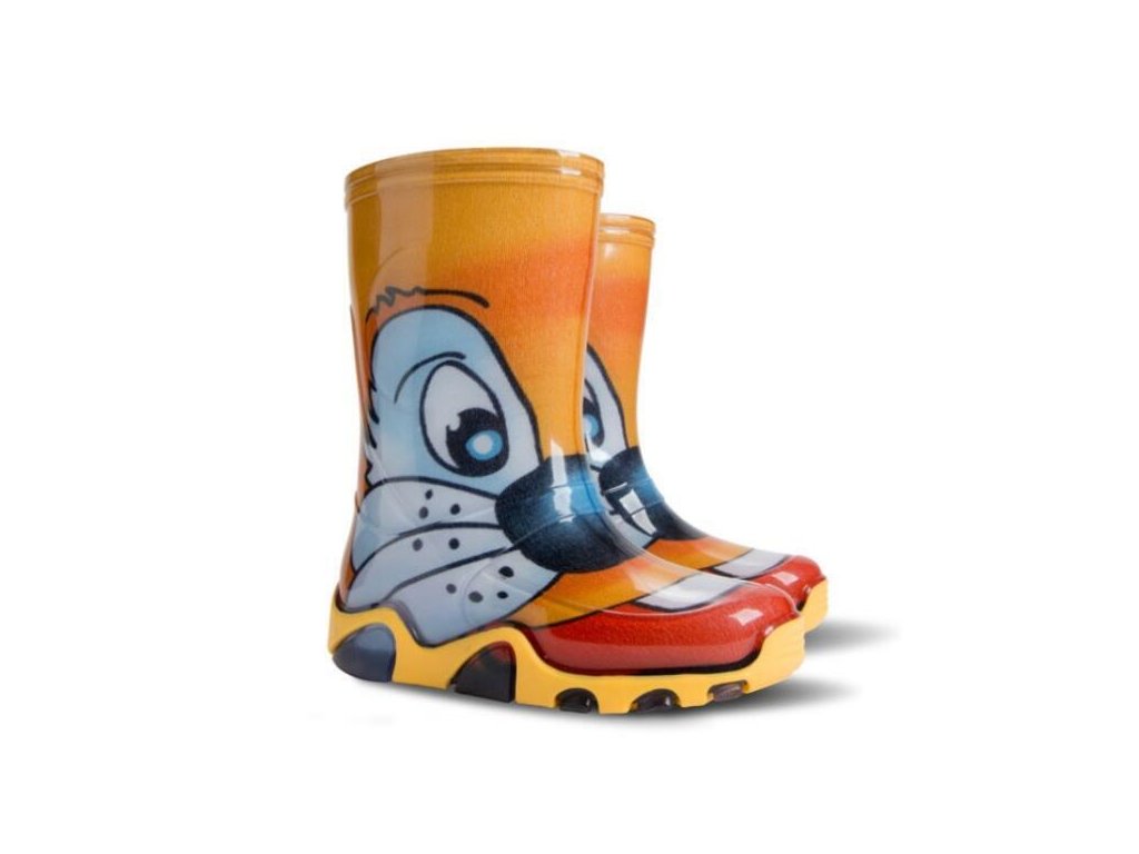Dětské barevné holínky demar STORMER PRINT jsou ideální pro deštivé letní počasí. Barva holínek je oranžová s imitací kočky. Mají hrubší protiskluzovou podrážku zajišťující bezpečnost chůze. Holínka je velice pohodlná a lehká. Materiál je vysoce kvalitní a odolné PVC podšité příjemnou textilií. Na patě obuvi je bezpečnostní reflexní pásek pro dobrou viditelnost dítěte ve tmě.