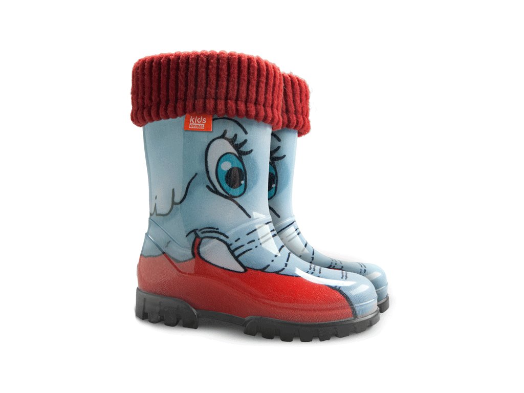 Dětské zateplené holínky demar TWISTER LUX PRINT jsou ideální pro deštivé letní a podzimní počasí. Barva s motivem slona. Mají hrubší protiskluzovou podrážku zajišťující bezpečnost chůze. Holínka je velice pohodlná a lehká. Materiál je vysoce kvalitní a odolné PVC podšité příjemnou textilií. Na patě obuvi je bezpečnostní reflexní pásek pro dobrou viditelnost dítěte ve tmě.
