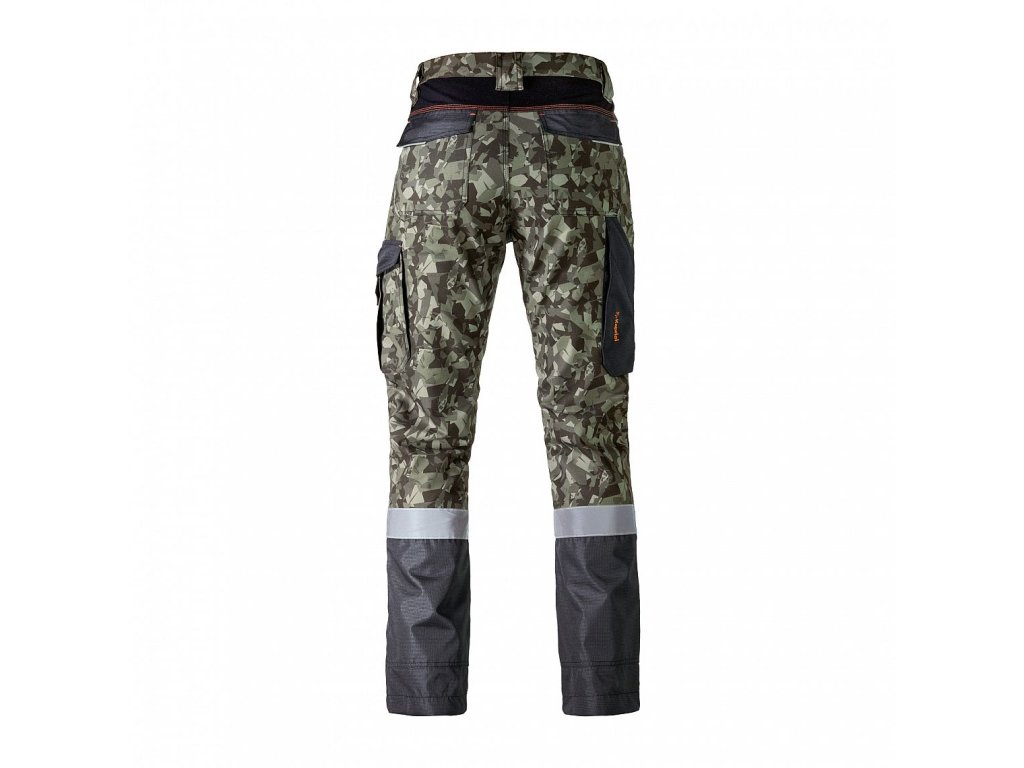 - Velmi flexibilní pracovní kalhoty v zajímavém "střepinovém" camou provedení jen khaki barva se speciální spodní manžetou proti vodě, sněhu. Namáhané partie jsou zesíleny materiálem Oxford PU. Spandex zajišťuje pohodlí při jakémkoliv pohybu. Kolenní kapsy na chrániče jsou samozřejmostí. Materiál je odolný opotřebení, odření i častému praní.