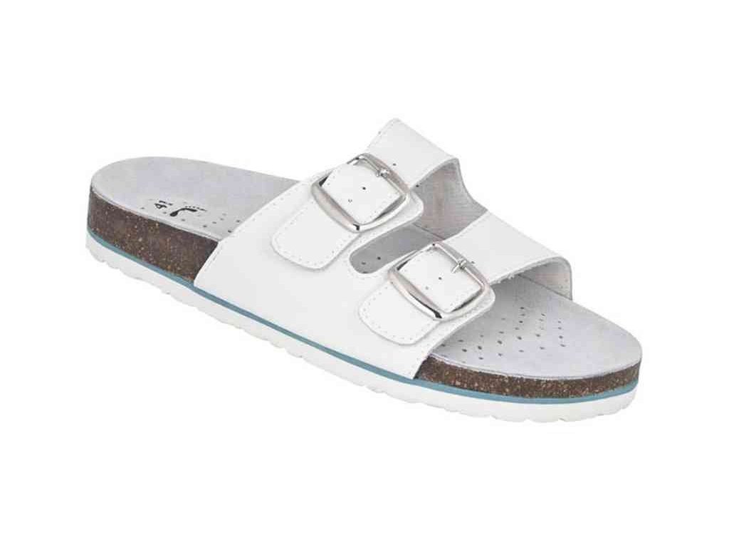 - korkové nazúvaky so zvrškom z materiálu action leather (štiepaná koža s povrchovou polyuretánovou úpravou)